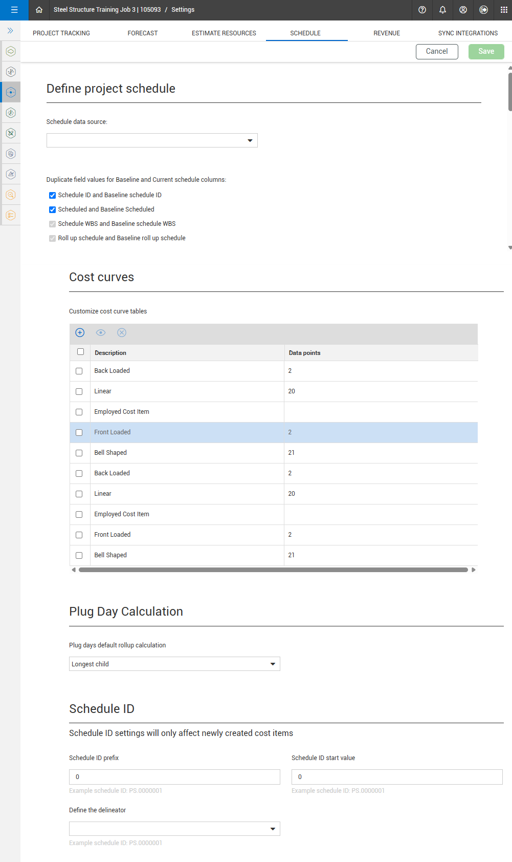 In the Schedule settings tab, you can configure the following schedule settings: